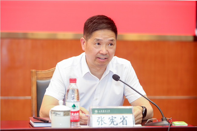 徐剑波在主持会议时表示,这次省委决定对学校领导班子进行调整,是立足全省高等教育高质量发展大局,着眼学校长远发展实际作出的重要决定,他代表学校党委表示完全拥护和坚决服从。徐剑波说,张宪省同志担任校长期间,团结带领学校行政班子和师生员工,以改革创新精神推动各项事业取得长足发展,学校呈现出和谐稳定、欣欣向荣的良好局面,我们向宪省同志表示衷心感谢和真诚祝福。冷畅俭同志长期在全国一流农林高校担任领导职务,从事学科建设、科研管理等工作多年,熟悉高等农业教育规律,办学治校经验丰富。畅俭同志担任校长,必将为山东农大带来更多先进的办学理念和管理经验,必将为学校加快“双一流”建设带来新机遇、新动能。学校党委将坚决贯彻省委部署要求,全面加强党的建设,抓好班子,带好队伍,坚持和完善党委领导下的校长负责制,全力支持畅俭同志开展工作。全校各级干部和广大师生要以实际行动支持、配合畅俭同志的工作,共同把山东农大事业建设好、发展好,决不辜负省委信任和组织重托。