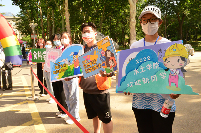 “喜迎学校党代会 启航时代新征程”“青春孕育无限希望,青年创造美好明天”“逐梦青春赛道,跑出最好成绩”……美丽的农大校园里,各种道旗、展板、条幅等将爱党爱国、爱校荣校教育融入迎新工作。