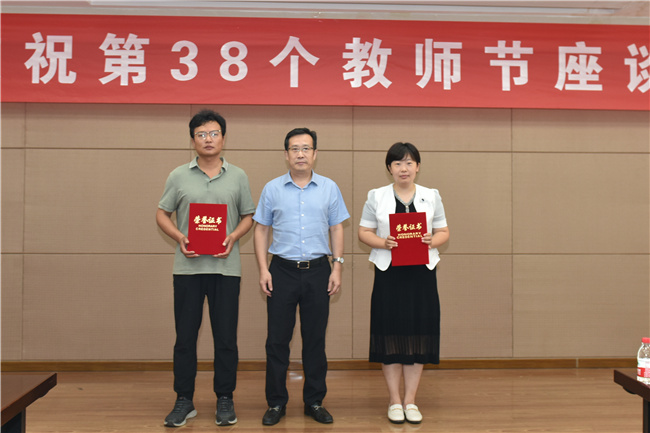 党委副书记、校长冷畅俭出席座谈会并为获奖代表颁奖,副校长嵇景涛、张然出席座谈会,副校长王勇主持座谈会。