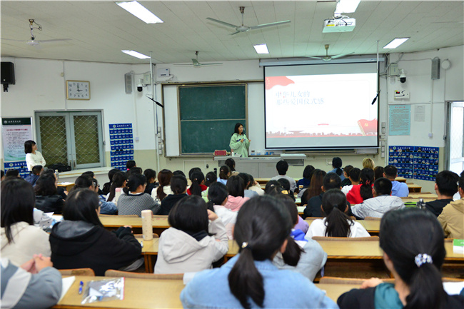 课堂气氛活跃,师生精神饱满。陈慧文以历史为轴,结合丰富的案例,解读了“如何理解中国特色社会主义是实现中华民族伟大复兴的必由之路”这一主题。恰逢国庆,在翻转课堂环节,学生通过丰富的图片和视频内容,分享了国庆节期间的所见所闻、所思所想,表达了爱国之心、报国之情、强国之志。