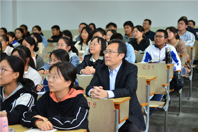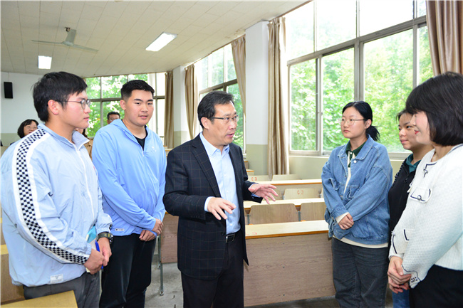 徐剑波坐在学生中间,专注听讲,认真记录,并仔细观察授课教师的上课特点与同学们的听课情况。课后,徐剑波与任课教师和上课学生亲切交流。他说,思政课是落实立德树人根本任务的关键课程,办好思政课关键在教师。要从党和国家事业发展全局的高度,坚守“为党育人、为国育才”,坚持立德树人、铸魂育人,认真学习贯彻习近平总书记关于办好思政课的重要论述,围绕贯彻落实立德树人这个根本任务,充分发挥思政课课堂教学的主渠道作用,不断推动新时代思政课的改革创新。要学习其他高校的典型经验和做法,紧扣办学定位和农林高校特色,以培育知农爱农新型人才为导向,注重实践育人,把理论讲透、把课堂讲活。要充分发挥出思政课程的育人作用,要结合学校实际,鼓励教学改革,创新教学方法,努力将《习近平新时代中国特色社会主义思想概论》打造成为有特色、有深度、有底蕴、有温度的“思政金课”。