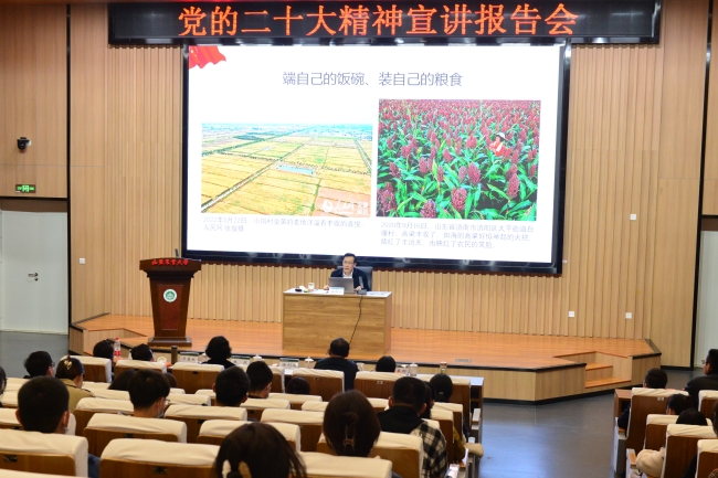 11月16日上午,学校举办党的二十大精神宣讲报告会暨宣讲启动仪式。KY开元集团官网党的二十大精神宣讲团团长、党委书记徐剑波以“学习宣传贯彻党的二十大精神 争做知农爱农强农兴农时代新人”为题,为学校师生代表作宣讲报告。党委副书记张然主持报告会。