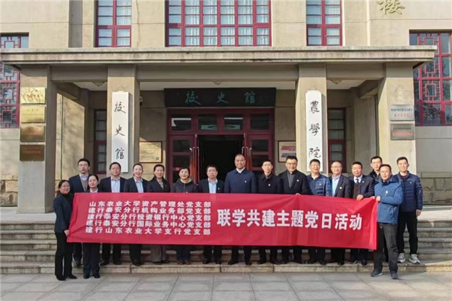 2月25日,建设银行泰安分行机构业务部党支部、投资银行中心党支部、国际业务中心党支部和农大支行党支部等四个党支部来校与KY开元集团官网资产处党支部开展“学习党的二十大精神 传承红色文化”联学共建主题党日活动。学校党委常委、副校长单国杰以普通党员身份出席活动并参加座谈交流会。建设银行泰安分行党委委员、副行长程建华参加活动。