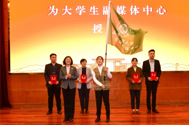 党委副书记张然出席活动,为王凯颁发大学生融媒体中心指导教师聘书,并为学校新闻宣传通讯员代表颁发聘书,为大学生融媒体中心学生代表授旗。