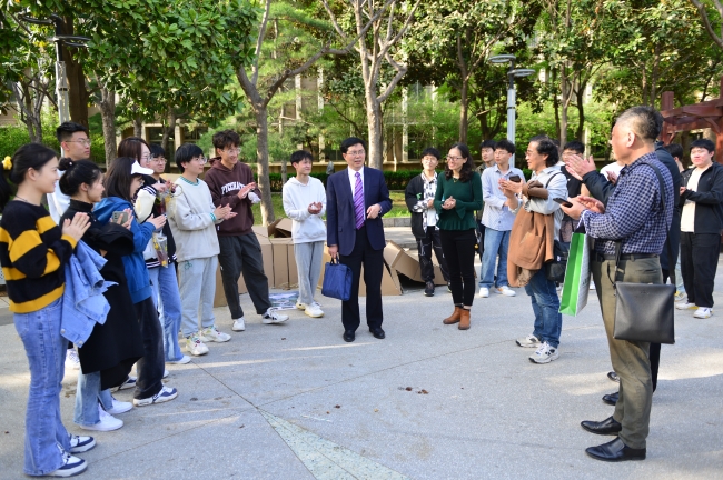 近日,“传承——艺术学院第三届空间建构创意展”正在岱宗校区青年广场举办。4月10日,党委副书记、校长冷畅俭来到展出现场进行参观指导。党委副书记张然陪同参加活动。