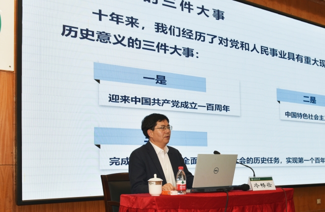 课程结束前,冷畅俭讲解了学校第八次党代会召开的重要意义,学校今后的发展目标和主要任务,勉励同学们要坚定不移听党话、跟党走,立志做有理想、敢担当、能吃苦、肯奋斗的新时代好青年,让青春在全面建设社会主义现代化国家的火热实践中绽放绚丽之花。