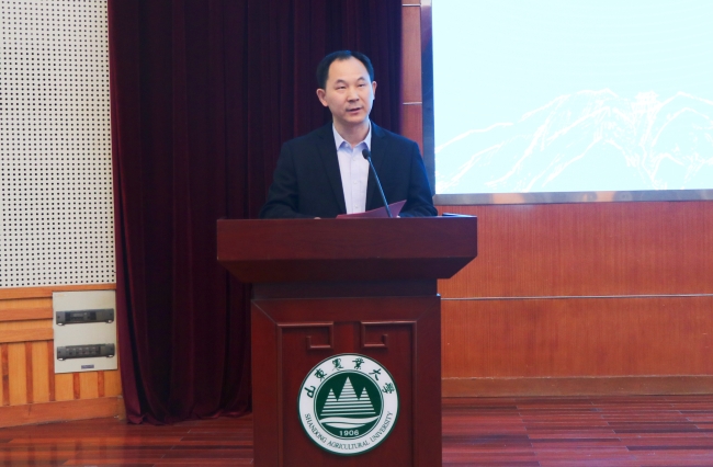 学工处处长冯国营从招生批次类别和规模、招生专业结构、志愿填报以及招生重点问题说明等方面进行了招生政策解读。农学院教授王宏伟以“突破种源瓶颈,为种业装上中国'芯'”为题,与大家分享了现代农业和未来农业发展趋势。2023届生物科学专业毕业生倪鑫波分享了自己在农大四年的学习、成长经历,表达了对学校培养的感谢和即将毕业的依依不舍,并希望更多有志青年加入山农、圆梦山农。