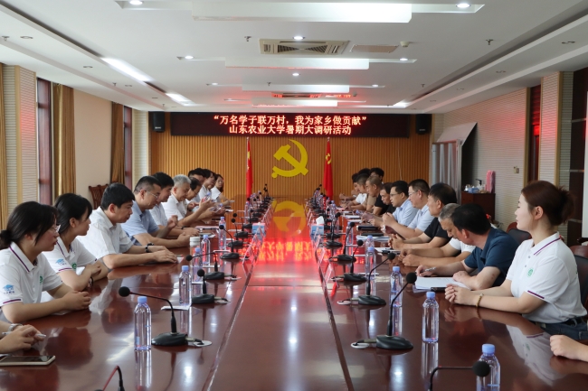 党委常委、统战部部长史文宪带领党委统战部、网络信息技术中心、机械与电子工程学院、外国语学院等单位有关负责同志在临沂、淄博开展调研对接活动。史文宪一行先后来到蒙阴县、费县、沂南县、沂源县、兰陵县,深入润宝农业产业园、东蒙镇蔬菜新产业孵化中心、马牧池乡张家峪子村等地,围绕服务乡村振兴、推动科技成果转化、农业产业发展、暑期大调研活动等,与各县区和企业有关负责同志进行座谈交流和合作对接,指导参加调研活动的同学要以调研活动为契机,帮助农民增收致富、为家乡发展做出农大学子应有贡献。