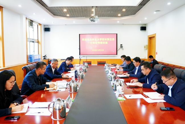 10月24日,河北农业大学党委副书记、校长张立杰一行来校访问,双方就学科建设、科技创新、绩效管理、办学资源优化等方面进行深入交流,党委副书记、校长冷畅俭参加座谈会并介绍学校有关情况。