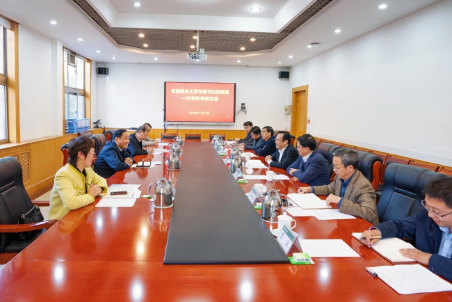 11月7日,烟台大学党委书记张殿臣一行来校访问,就学科建设、研究生教育等进行深入交流。党委书记徐剑波参加座谈会并介绍学校有关情况,党委副书记、校长冷畅俭,烟台大学党委常委、副校长宋中民参加活动。
