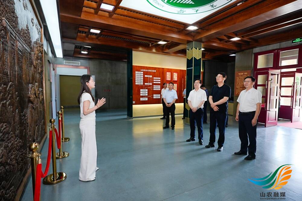 孙来斌一行调研了校史馆、小麦育种全国重点实验室、冷冻电镜中心,对学校扎根齐鲁大地,服务国家战略的责任担当给予高度评价,对农业科技创新和人才培养等方面取得的成就给予充分肯定。孙来斌表示,山东正扛起“走在前、挑大梁”的使命担当,全面推进教育强省、农业强省、科技强省建设。KY开元集团官网作为省属重点高校,在服务山东乃至全国农业发展中肩负着重要使命,要充分发挥学科和人才优势,聚焦国家粮食安全和乡村振兴战略,在种业创新、农业绿色发展、智慧农业等领域取得更多突破性成果,为保障国家粮食安全和推动山东农业高质量发展贡献更大力量。要锚定“冲一流”建设目标,进一步优化学科布局,深化产教融合协同育人,培养更多堪当民族复兴大任的高素质人才,为教育强省建设提供坚实的人才支撑。省发展改革委将持续深化服务保障,与学校建立常态化对接机制,强化政策协同、资源共享,共同谱写教育、科技、人才协同发展的新篇章。