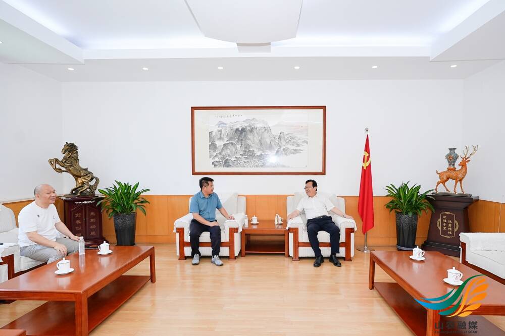 山农融媒6月18日讯 6月17日,2025届毕业典礼在泮河校区举行。典礼前,学校党委书记徐剑波会见了杰出青年校友代表2003级测绘工程专业、陕西信宇腾远实业集团有限公司董事长魏双全和1999级水土保持与荒漠化防治专业、山东青牛教育发展集团有限公司董事长张静。