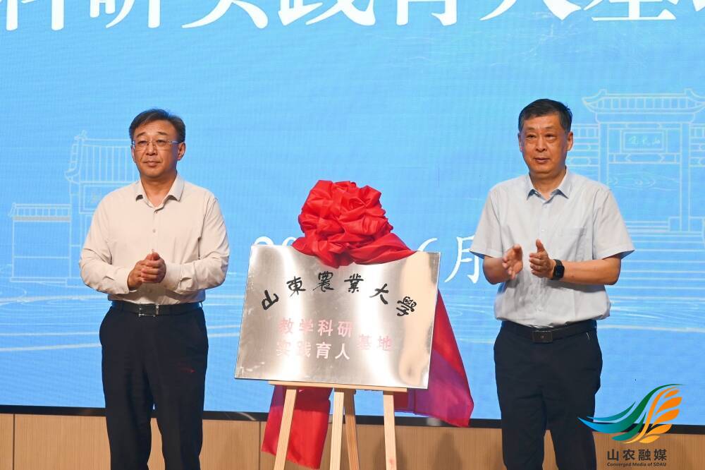 山农融媒6月19日讯 近日,学校赴泰安市宁阳县开展校地合作暨2025届毕业生番茄产业“产区汇报”。学校副校长林海和泰安市人民政府副市长马保文共同为合作基地揭牌,宁阳县委副书记、县长刘富强,泰安市政府副秘书长张强参加活动。