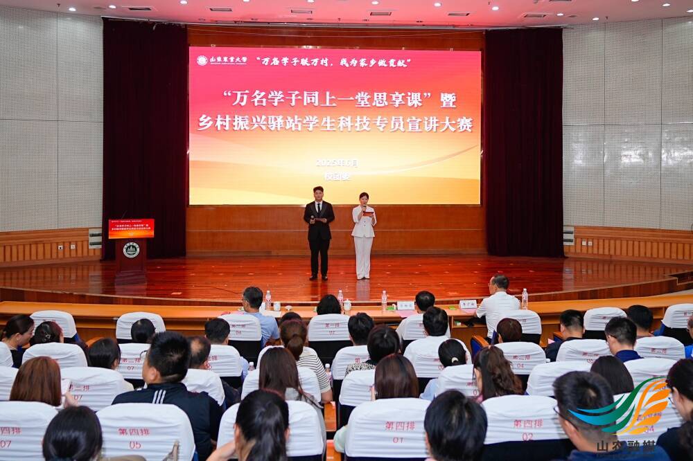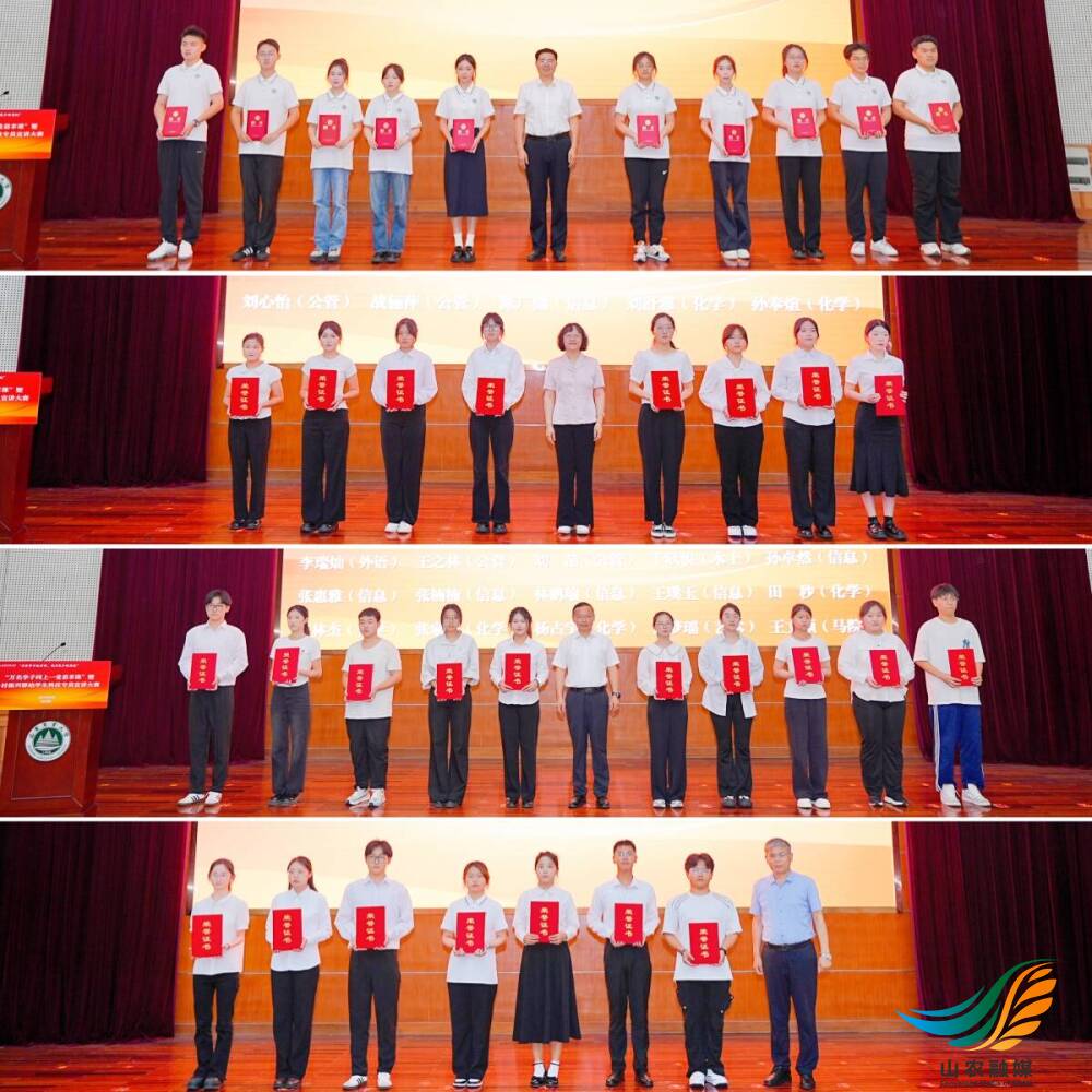 山农融媒6月23日讯 6月19日,学校举办“万名学子同上一堂思享课”暨乡村振兴驿站学生科技专员宣讲大赛。学校党委副书记、校长冷畅俭出席活动并为学生科技专员宣讲员颁发聘书,党委副书记张然,党委常委、副校长李广松,党委常委、副校长周玉玺为乡村振兴驿站工作优秀短视频、优秀工作日志获奖代表颁奖。