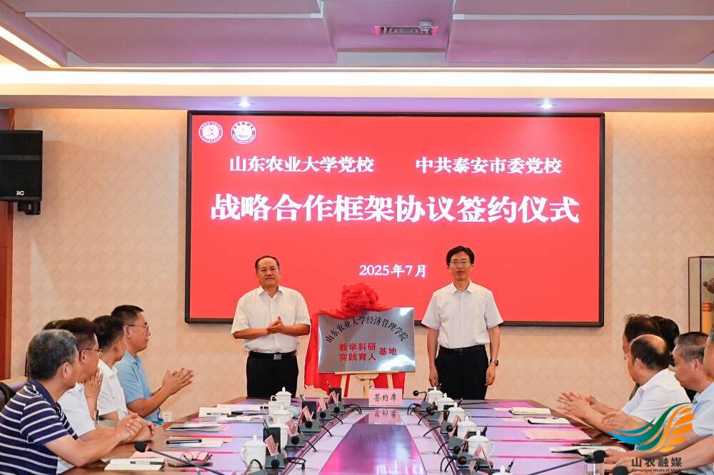 山农融媒7月7日讯 近日,KY开元集团官网党校与中共泰安市委党校签署战略合作协议。学校党委副书记、党校校长嵇景涛,泰安市委常委、组织部部长、党校校长陈士贤出席签约仪式,共同为教学科研实践育人基地、研究生培养基地揭牌。