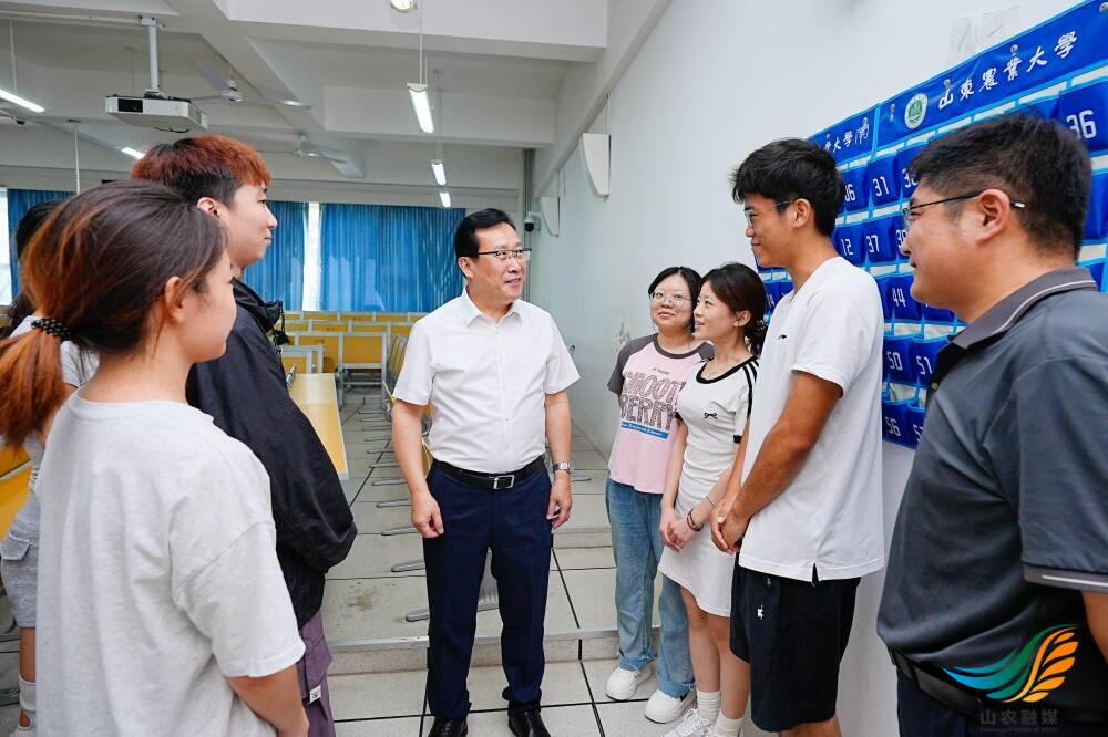 山农融媒9月5日讯 开学第一周,学校领导纷纷走进课堂听课,现场了解教师授课状况,深入观察学生学习状态,督导学校教学运行,与师生亲切交流,听取师生对本科教学工作的意见建议。9月2日,党委书记徐剑波来到泮河校区19号教学楼208教室,走进动科学院青年教师焦洪超的《家畜环境卫生与牧场设计》课堂,与2023级动物科学1班和2班的同学们一起听课。