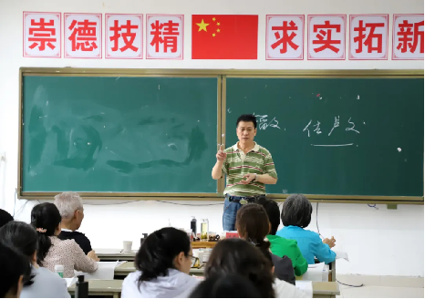 其次,江从伟老师结合王羲之的第一行书《兰亭序》,从姿势、笔性、笔法、节奏等方面讲授了写好粉笔字的基本技巧。他还从基本笔画“点”和“横”入手,从起笔、行笔、收笔三方面进行了详细的指导。江从伟教授特别强调想要写好粉笔字,不但要勤练字,还要在练字的过程中领悟、发现书写的规律及窍门。他凭借专业的知识和丰富的教学经验,从笔法的运用、汉字结构、高效的临摹、部首归类等多方面为老师们介绍了书法学习的有效步骤,为老师们在今后的书法学习道路上的指明了方向。丹青技艺练字功,笔势挥洒舞文蓄。江教授的细致讲解后,老师们将学到的知识内化于心,外化于形,并将其融入到自己的粉笔字书写中。