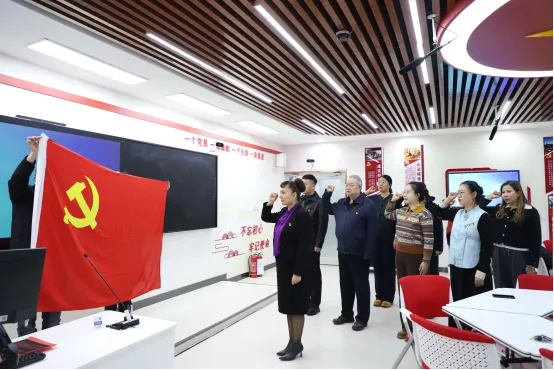 学院党委委员、第二党支部书记迪丽拜尔·克依木主持活动,并带领全体党员重温入党誓词。