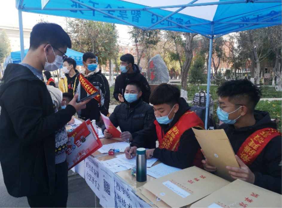 为全面做好疫情防控和迎新工作,学院安排了22名教师和18名学生志愿者在乌鲁木齐火车站、新客运张、南郊客运站接站,各二级学院都组建了学生志愿者服务队,帮助新生办理报到手续。