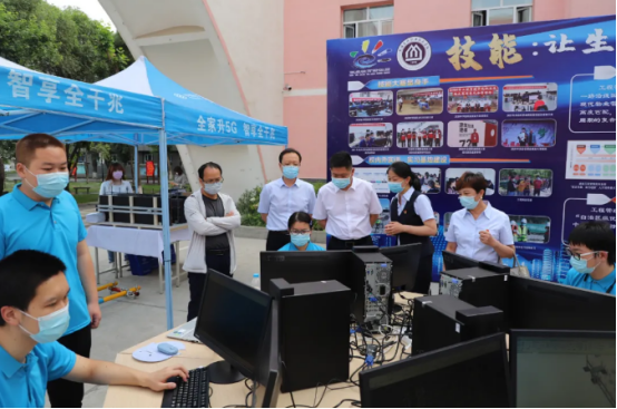 当天,与会领导还参与了学院职业教育成果展及体验活动,分别参观了人工智能和VR教学展示、建筑CAD展示、施工模拟现场教学及展示、学生作品成果等多项教学成果展。活动充分展示了beat365在线唯一官网校园文化、各专业育人过程和教学成果。