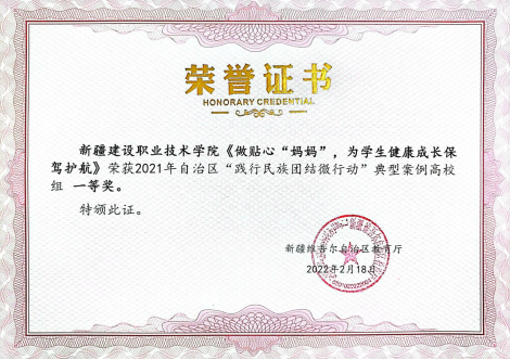 《做贴心“妈妈”,为学生健康成长保驾护航》获得 “践行民族团结微行动”典型案例一等奖,我院也是唯一获得此项殊荣的自治区高职院校。该作品真实反映了市政与环境工程学院曾广群老师“妈妈式”关心呵护学生的感人事迹,由市政与环境工程学院报送。