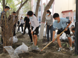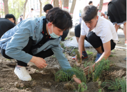 在劳动中,大家纷纷撸起袖子、俯下身子、分工合作,翻土、整地、起垅、栽花,现场一派热火朝天的景象。经过几个小时的辛勤劳作,校园道路两旁焕然一新,种满了鼠尾草、松果菊、鸢尾花、萱草花等花苗。