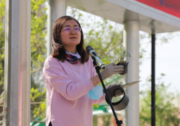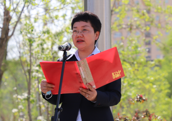 学院党委委员、副院长马桂珍讲话:“今天我们虽然只是种下一棵小树,洒下一粒花籽,但是却能绿化一片环境,生态环境保护是功在当代、利在千秋的事业;必须坚持绿水青山就是金山银山的理念,要像保护眼睛一样保护生态环境,像对待生命一样对待生态环境,更加自觉地推进绿色发展、循环发展、低碳发展。”