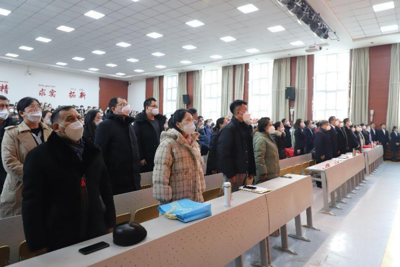 1月8日, 新年伊始 ,我院全体教职工欢聚一堂,隆重召开“学习贯彻二十大,培根铸魂育新人——beat365在线唯一官网2022年教学工作表彰大会暨第四届教职工荣退典礼”,回顾总结学院过去一年的教学工作,表彰学院教育教学工作中涌现出来的先进集体和先进个人,并以最真挚的情谊欢送荣退的院领导、老师,进一步弘扬尊师重教的优良传统,以榜样的力量引领学院师德师风建设,激励广大教职工进一步增强工作的责任感和使命感,开拓创新、勇争一流,努力为学院高质量发展作出积极贡献。