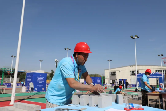 自治区第一届职业技能大赛决赛暨第二届全国技能大赛新疆选拔赛砌筑和瓷砖贴面项目在新疆建设技师培训学院开赛