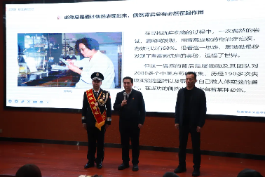 全国见义勇为英雄、感动中国人物、首届全国道德模范、乌鲁木齐市公安局天山区分局西河坝派出所民警艾尼·居买尔同志在建工校区进行4·15“全民国家安全教育日”宣讲。