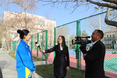 当天新疆电视台、新疆新闻网也同步进行采访,报道了艾尼·居买尔来学院宣讲。