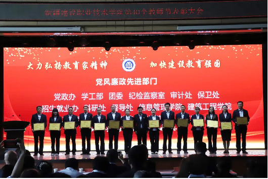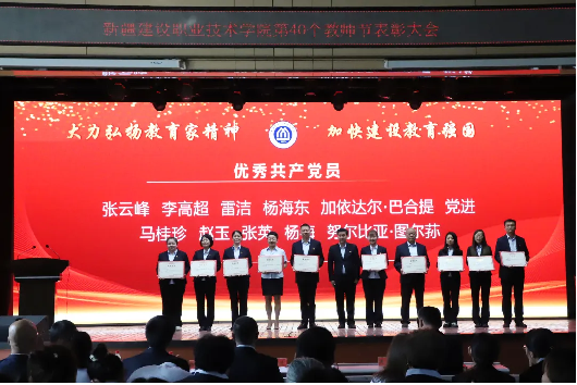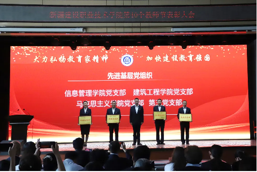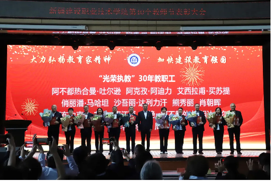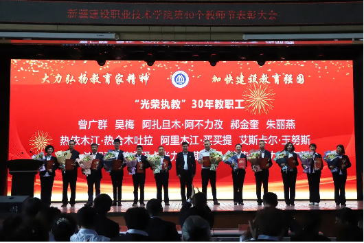 金秋送爽、硕果累累。9月10日下午,我院在建材校区礼堂隆重举行第40个教师节表彰大会。表彰学院教育教学工作中涌现出来的先进集体和先进个人,向全校教职工致以节日问候!营造尊师重教的浓厚氛围,以榜样的力量引领学院师德师风建设,大力弘扬教育家精神,携手并进,进一步增强工作的责任感和使命感,开拓创新,努力为学院高质量发展作出积极贡献。学院党委副书记、院长党进,党委副书记、副院长谢克热提·夏吾开提,党委委员、副院长吴冶,副院长余冬贞出席大会,全体教职工参加大会。党委副书记、副院长马桂珍主持大会。