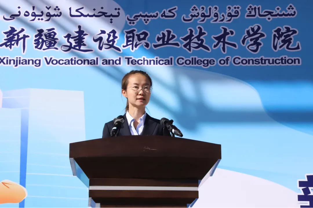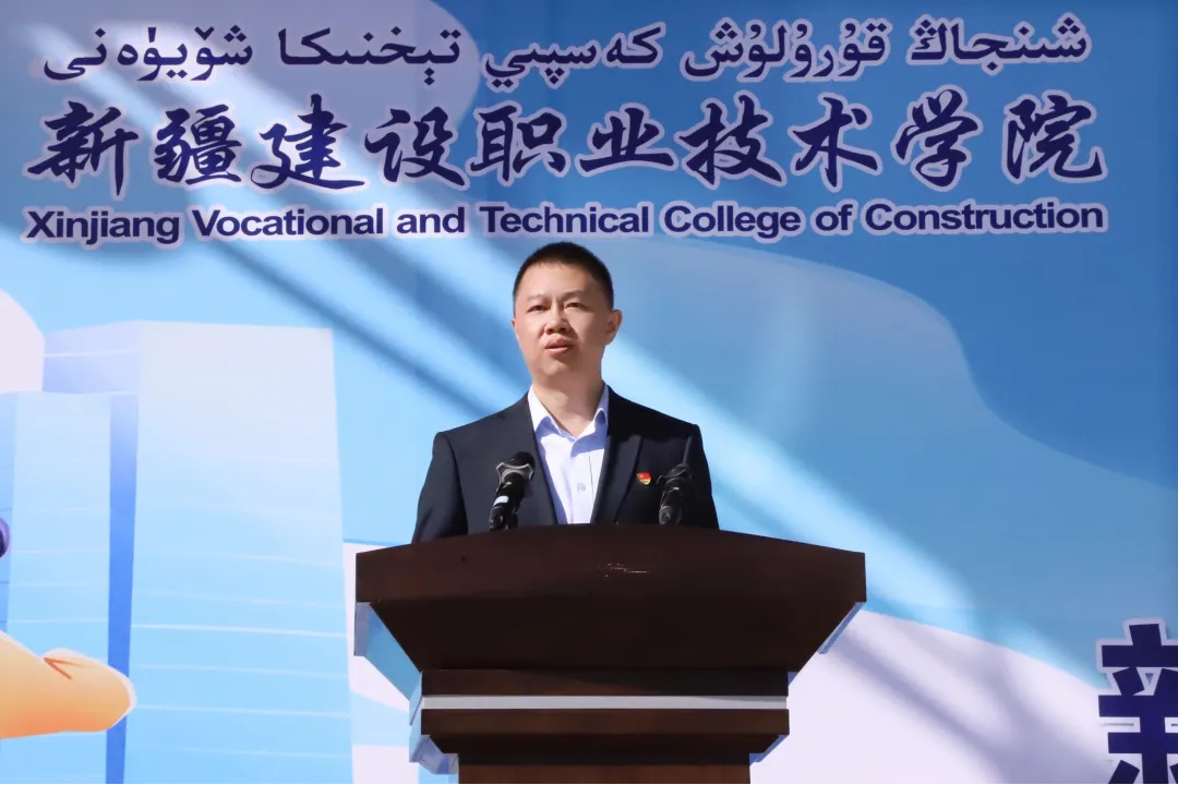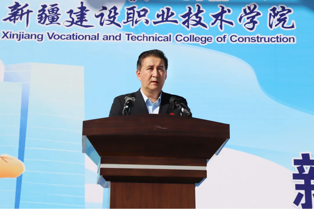 学院党委副书记、院长党进讲话。他强调,“崇德、技精、求实、拓新”是学院办学五十余年传承下来的精神,你们要从内涵上理解好、从行动上践行好。他对全体新生提出四点希望:一要崇德修身,养浩然正气。习近平总书记在北京大学师生座谈会上指出“道德之于个人、之于社会,都具有基础性意义,做人做事第一位的是崇德修身”。即将开始的军训是大学生接受国防教育课的基本形式,对你们来说也是一次绝佳的修身机会,希望你们通过军训激发爱国热情,培养军人般的钢铁意志,养成军人般的纪律观念,锤炼军人般的战斗品格,学习军人忠诚、担当、勇敢、奋进、无畏、顽强、乐观、自律、团结、互助、奉献等优秀品质,以昂扬的精神面貌、奋发有为的作风气质,为将来学习、生活、工作“踢好第一个正步”。二要技精业强,练本领底气。 “学如弓弩,才如箭镞。识以领之,方能中鹄。”来到学校,学习是你们当下的最紧要事,同时也是你们贯穿一生的必修课。一方面,同学们要珍惜校园学习时光,下苦功夫、求真学问、练真本领,不断丰富学识、增长见识,既打牢扎实基础,又及时更新知识,既刻苦钻研理论,又积极掌握技能;既向书本学,又向实践学;既立足优秀传统,又面向时代前沿,努力成为兼收并蓄、融会贯通、本领高强、全面发展的高素质技能型人才。另一方面,身处日新月异的新时代,面对百年未有之大变局,知识更新周期大大缩短,要坚定“读万卷书”的志向,葆有“行万里路”的气魄,时刻具有本领不够的危机感、能力不足的紧迫感,牢固树立终身学习理念,把提升本领作为一种责任,一种精神追求,一种生活方式。三要求实担当,秉强国志气。希望你们能坚定理想,不负时代、不负韶华,用奋斗擦亮青春,用拼搏展现人生,用奉献铸就未来,努力成为担当民族复兴大任的时代新人,切实肩负起奋进第二个百年的历史责任。希望你们珍惜学习机会,提升综合素质,用活用好专业知识,传承发扬工匠精神,在一砖一瓦、一钉一铆中践行初心使命,肩负起建设美丽家乡的责任。希望你们用知识武装头脑,提高辨别能力,发扬斗争精神,讲好新疆故事、建院故事,用一言一行、一举一动肩负起实现社会稳定、长治久安的责任。希望你们努力提升理论基础和实操能力,精益求精、臻于至善,肩负起推动住建行业高质量发展的责任,用丰富的学识、精湛的技艺,以实际行动为实现中国式现代化挺膺担当。四要拓新笃行,树革新勇气。当前科技发展日新月异,新一轮科技革命和产业变革对职业教育和同学们提出了新的要求。职业教育需要同行业新技术、新业态、新产业、新模式高度契合,同学们选择了建院就是选择了住建行业,这其中还有许多未知的领域,需要我们在实践中大胆探索,行业未来同样需要各位同学通过革故鼎新不断开辟。希望你们保持蓬勃向上的朝气、“敢为人先”的锐气、锐意创新的勇气,关注当今科技发展的新动向,了解行业发展的新业态,学习运用AI、大数据等工具,通过学院组织的各类讲座、论坛拓宽视野,在学习、实训中勇立潮头、勤加钻研,立志做新时代的“弄潮儿”!