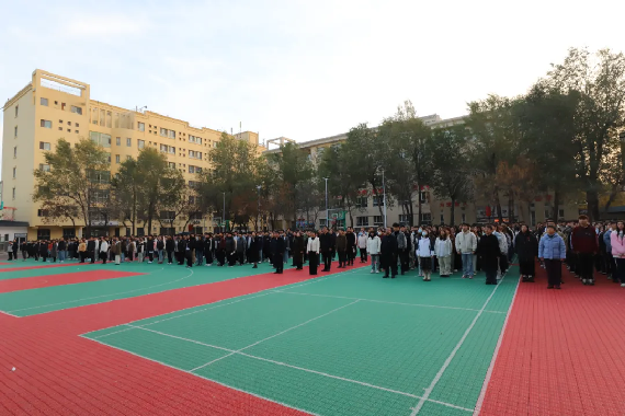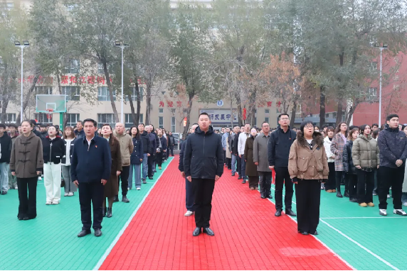 齐聚国旗下,共抒爱国情。全体师生齐聚操场,列队有序。国旗护卫队步伐铿锵有力,护送鲜红的五星红旗入场。伴随着雄壮的国歌声,五星红旗冉冉升起,全体师生肃立行注目礼,大声齐唱国歌。三校区学生代表分别在国旗下献词,大家表示要勤奋学习,锐意进取,追求卓越,以汗水筑梦新征程,让青春在新时代绽放出绚丽的光彩!