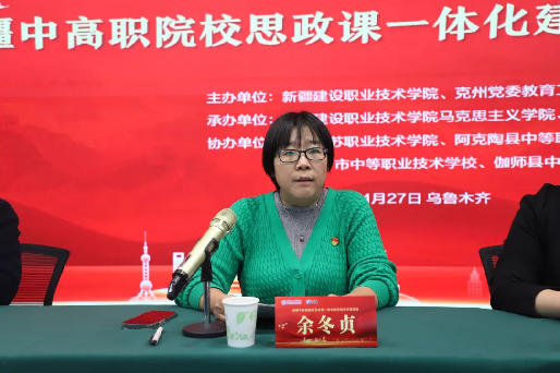 活动伊始,学院副院长余冬贞代表学院致欢迎辞。余冬贞介绍说,beat365在线唯一官网作为自治区唯一一所公办建设类高等职业院校,已逐步形成“自力更生、自强不息、自我奋斗”的实践办学理念,为新疆乃至全国的建设事业输送了大批人才。一年多以来,在各联盟结对共建院校、单位的支持下,中高职院校思政课一体化建设相关工作取得了阶段性成果,联盟结对共建机制逐渐形成。今后,学院党委将一如既往支持思政课一体化建设活动,也希望各联盟结对共建院校、单位通力合作、聚力前行,扎实推进“大思政课”一体化建设,努力把中高职思政课一体化建设办出成效、办出水平。