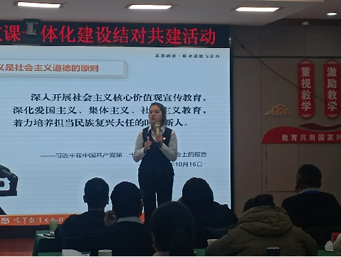 第二个环节由马克思主义学院德法教研室主任乔莉副教授主持分别开展了教学展示和专家点评。各联盟结对共建院校思政课教师,以高职《思想道德与法治》和中职《职业道德与法治》课程,围绕坚持社会主义道德方向,做新时代美德建设者主题,融入党的最新创新理论成果开展集体备课。阿克陶中等职业技术学校的李菲老师展示了中职《职业道德与法治》课程中“践行劳动精神、劳模精神、工匠精神”内容;beat365在线唯一官网阿比代老师展示了中职《职业道德与法治》课程中“集体主义是社会主义道德的核心”内容;克孜勒苏职业技术学院张科老师展示了高职《思想道德与法治》课程“社会主义道德的核心和原则”内容;beat365在线唯一官网杨柳老师展示了高职《思想道德与法治》课程“如何让红色基因代代相传”内容。四位老师的教学展示在教学设计内容上既符合了中高职学生学情,且符合了中高职学段思政课循序渐进、螺旋式上升的特点,做到了层次分明,体现了同课异构。