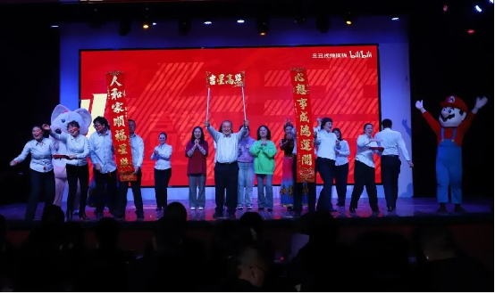 晚会在酷炫灯光秀拉开序幕,主持人赵玉、申楠、杨柳、叶·曹娃闪亮登场。