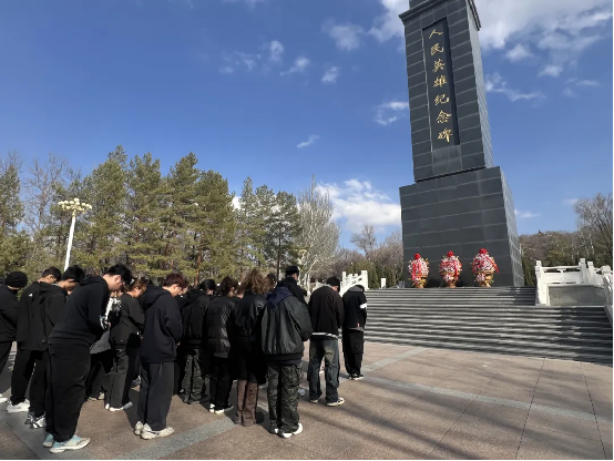 午后暖阳,倾洒而下,同学们身着整洁的服装,胸佩团徽,列队步入陵园。全体师生面向巍峨矗立的人民英雄纪念碑整齐肃立,雄浑激昂的国歌声划破长空,在陵园的每一寸土地上激昂回荡,那是青春力量对祖国母亲的深情告白,亦是对先烈英魂的崇高礼赞。