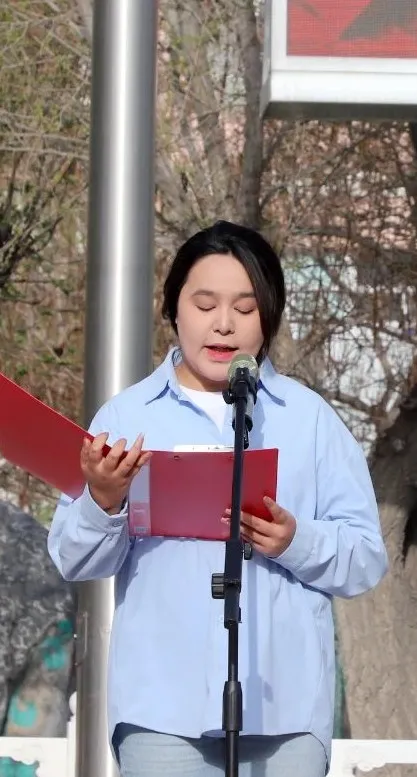 (党委委员、党委宣传部部长迪丽拜尔·克依木在建材校区致辞)