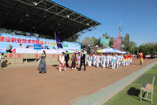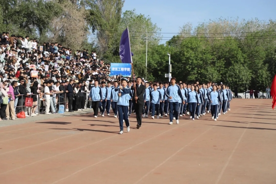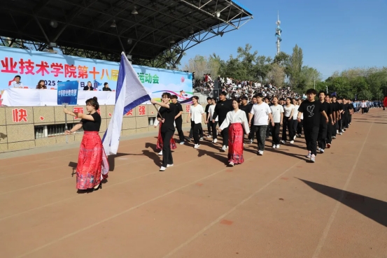 运动场上红旗招展,随着激昂的《运动员进行曲》响起,国旗护卫队护送着鲜艳的五星红旗率先入场,校旗方阵和彩旗方阵紧随其后。裁判员方阵迈着稳健的步伐,挺拔的身姿彰显着严谨公正的赛事精神。随后,各二级学院(部)方阵依次入场,队员们精神抖擞、步伐整齐,嘹亮的口号声此起彼伏,在运动场上空回荡。他们矫健的身姿和昂扬的斗志,展现出建院学子朝气蓬勃的青春风采。