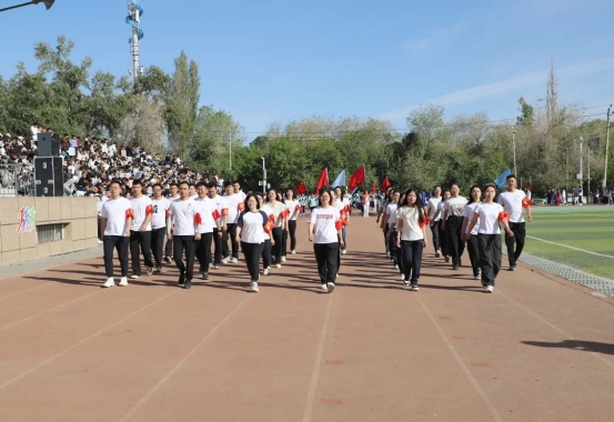 公共教学部教师阿卜杜外力·热扎克代表裁判员宣誓,承诺将恪守职业准则,秉持公平公正原则,以专业素养确保赛事裁决的准确性。市政与环境工程学院普高园林23-2班学生哈吉木拉提·江阿别克代表运动员宣誓,表示将以团结协作的精神和顽强拼搏的态度投入比赛,充分展现体育风采与竞技水平。