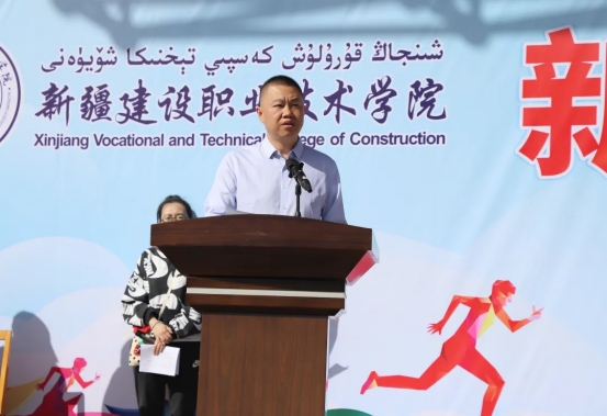 党进指出,习近平总书记"体育承载着国家强盛、民族振兴梦想"这一重要嘱托时刻激励着我们,学院作为培养住建行业能工巧匠和高素质技术技能人才的主基地,要始终践行"崇德技精 求实拓新"的育人初心,在体育竞技中锤炼品德修养,在专业学习中锻造精湛技艺。党进强调,今日的赛场既是速度与力量的竞技场,更是意志与品格的试金石,并对全体师生提出了三点殷切期望。一要以体育之名,展奋斗之姿。希望全体运动员发扬“更高、更快、更强、更团结”的奥林匹克精神,在赛场上挑战自我、突破极限;期待你们在竞技中突破自我边界,让每滴汗水折射青春华彩,每次冲刺丈量成长高度。要知道真正的胜利,就是超越昨日的自己! 二要秉公明之尺,尽守护之责。全体裁判员、工作人员要恪守规则、严谨执裁,让每一声哨响成为公平的宣言,每一次裁决化作责任的刻度。服务团队宜怀润物之心,织就赛事温暖经纬。 三要铸团结之魂,扬青春之志。各族学子要在同场竞技中厚植手足情谊、增进包容理解,在互助中深化情谊,让团结的交响激扬赛场,以“中华民族一家亲”的铿锵旋律,绽放民族团结的璀璨华章。03裁判员、运动员代表宣誓