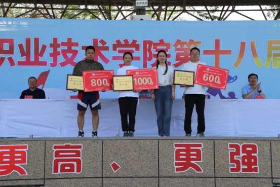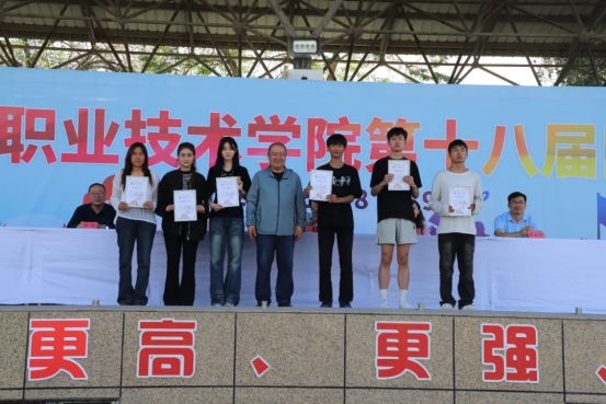 在为期两天的赛程中,共有800余名学生运动员参与11个田径项目的角逐,200多名教职工在4个特色项目中同场竞技。在教职工趣味拔河、多人多足跑、100米、400米接力等项目中,教职工们以团结之姿诠释担当,以拼搏身影诠释“三尺讲台育桃李”的初心,用强健体魄彰显“身正为范铸栋梁”的担当。涌现出了6项竞赛团体奖、144项个人奖,充分展示了我院体育竞技水平和体育教学成果,充分展现了莘莘学子的青春风采。