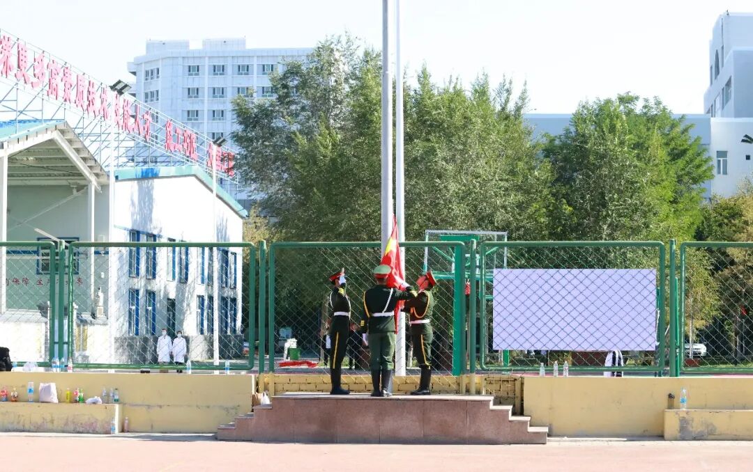 大会在庄严的国歌声中拉开帷幕,国旗队队员步履铿锵,护卫国旗冉冉升起,全体参会人员向国旗行注目礼,齐声共唱国歌。