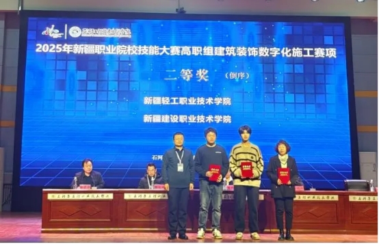 在建筑装饰行业数字化转型的汹涌浪潮中,beat365在线唯一官网参赛团队以过硬的技术实力与不懈的努力,在各大竞赛舞台上脱颖而出,成为行业数字化创新实践的先锋力量。2024年10月,在世界职业技能大赛土木工程赛道的建筑装饰数字化施工赛项中,学院艾志刚、周丽娜两位指导老师带领谭红涛、戴军、于景灏、吕英全四名参赛选手,凭借精湛技艺斩获铜奖;2025年2月,周丽娜老师再度指导于景灏、吕英全两名学生,征战2025年新疆职业院校技能大赛建筑装饰数字化施工(GZ009)赛场,在师生同赛的激烈竞争中,勇夺二等奖,续写荣耀篇章。