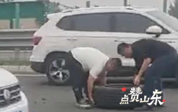 大货车轮胎滚落到高速路上 山东大哥果断出手