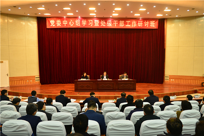 2月27日上午,学校举办党委理论学习中心组学习暨处级干部工作研讨班,党委书记徐剑波出席会议并讲话,要求全校师生深刻认识学校办学发展底蕴优势,准确研判面临机遇和风险挑战,牢牢把握创新这个核心元素,持之以恒改进作风、增强斗志,凝心聚力打好学校“十四五”高质量发展攻坚战。校长张宪省总结梳理学校2021年工作成绩,对做好2022年重点工作进行安排部署。